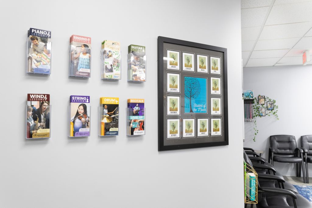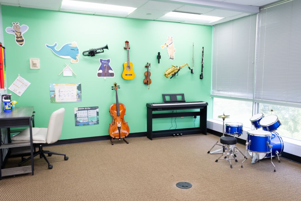 We believe the environment in which students learn music should be inspiring! Our facilities are not only beautiful, but they are functional and provide students with the utmost opportunity to be inspired and excel. Our lesson rooms are spacious and well-lit and we have windows throughout our facilities providing natural light. Beautiful, well-maintained acoustic pianos are used in all of our piano lesson rooms. Our facilities are sparkling clean and tastefully decorated. We also provide spacious waiting areas for kids and parents with free WiFi, coffee, tea, and magazines. Our families and teachers LOVE spending time in our schools